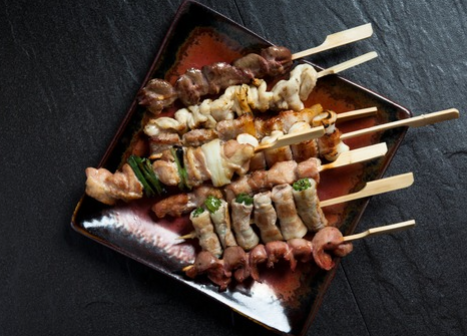 인기가 많은 메뉴는 간소쿠키카츠인데 소고기 꼬치입니다.