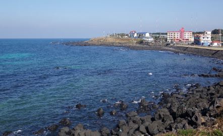 바다 앞에는 어린 왕자의 보아뱀을 삼킨 코끼리 그림 모양의 비양도가 있습니다. 비양도와 바다 위의 석양은 이곳에서 놓칠 수 없는 또 다른 장관입니다. 여름에는 밤에 문을 열기 때문에 야자수 아래 제주도의 푸른 밤을 즐길 수 있습니다.